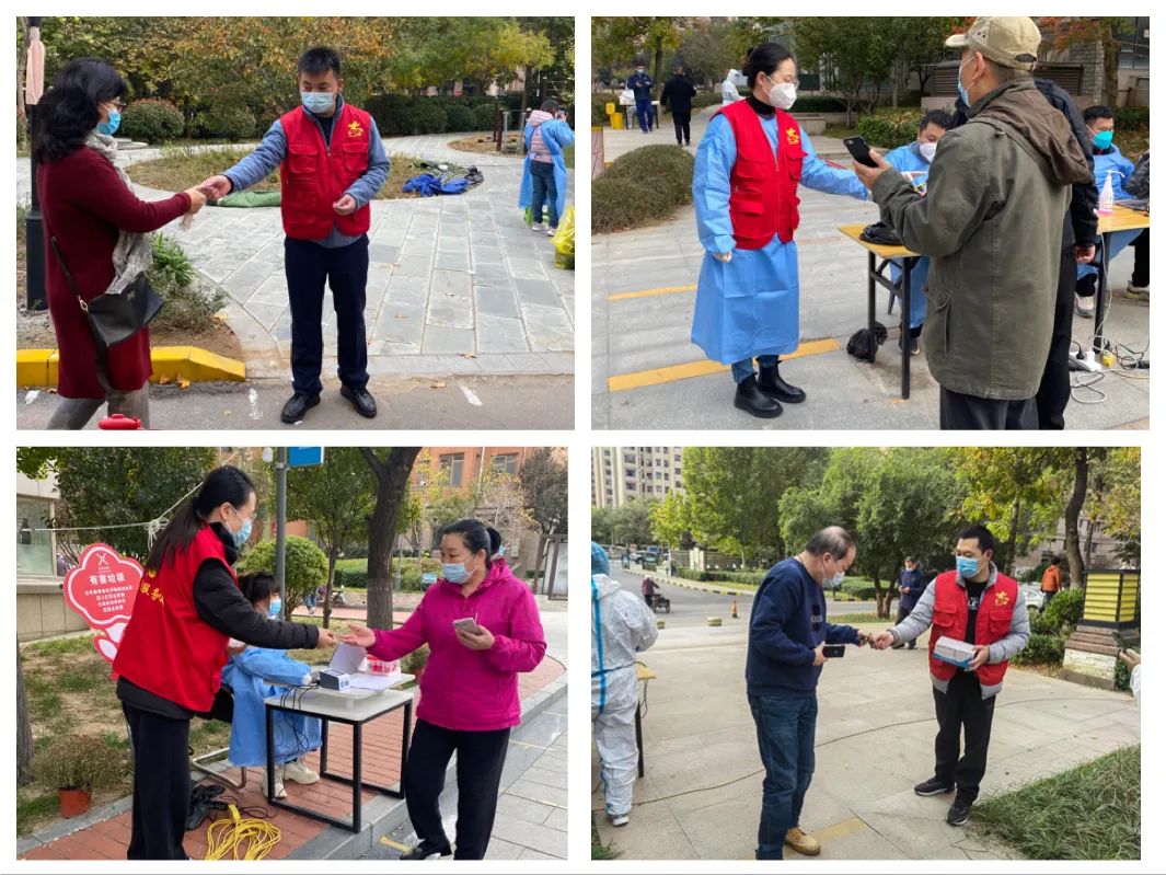 志愿服務暖人心。志愿者們準時到達社區(qū)核酸采集點,在各個檢測點幫助維持秩序,引導群眾保持安全距離,有序檢測,幫助老年群眾注冊核酸檢測信息碼,發(fā)放核酸檢測貼紙,宣傳疫情防控法律法規(guī),針對群眾提出的各項疑問進行耐心解答。志愿者們在不同的崗位上履職盡責,配合社區(qū)工作人員、醫(yī)務工作者明確分工、協(xié)調(diào)配合,大大提高了檢測效率,確保了社區(qū)按時完成全員核酸檢測工作。